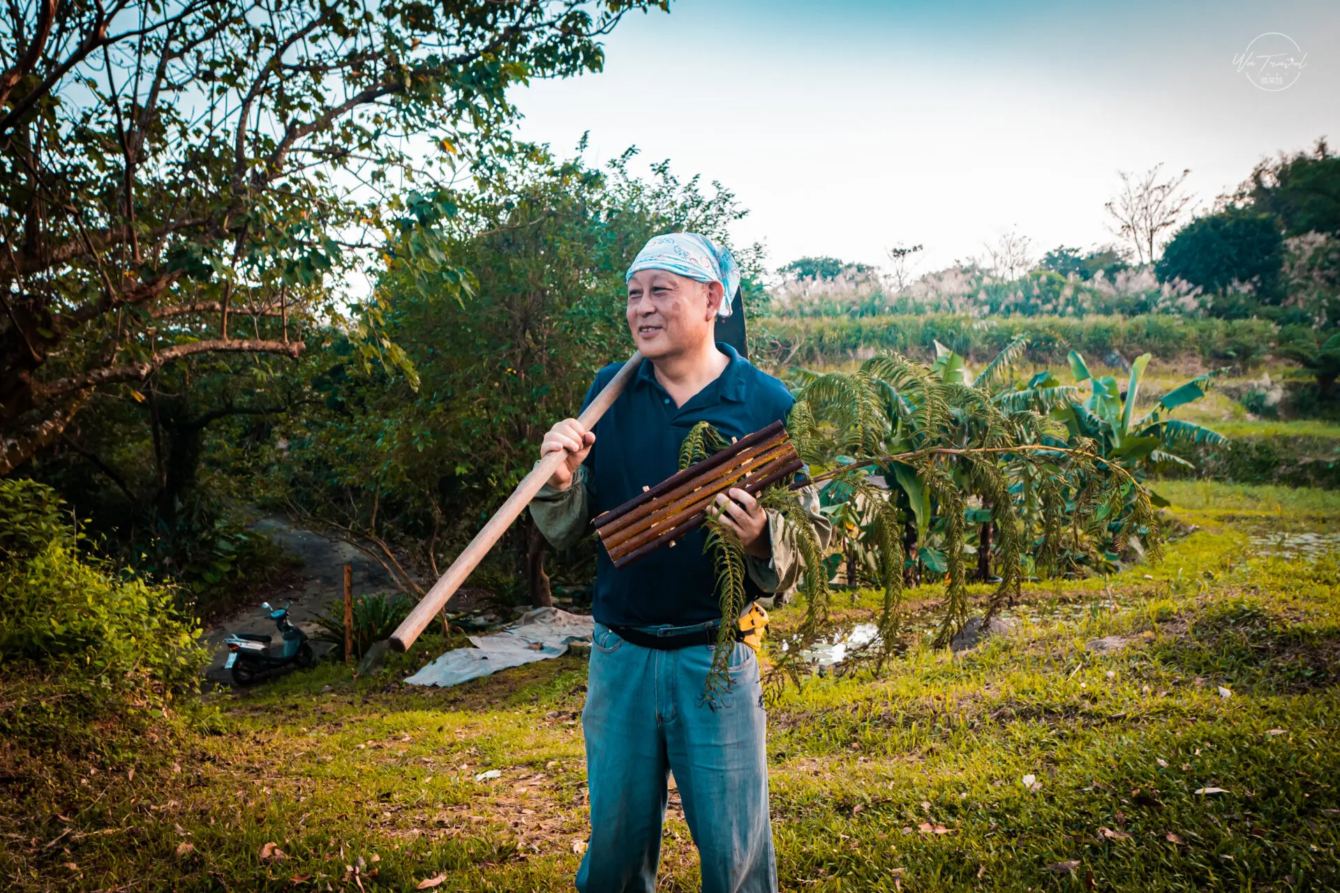 跟著蕭大哥的腳步逛菜園,「每個人摘一粒嚐看看」,水冬瓜、刺波、龍葵這些野果都是大自然孕育的零嘴,每個山村小孩,隨手可得的野果。一階階的水梯田則是塊畫布,秋冬時分,藍天白雲倒映在清澈的水鏡裡;春來插秧後,稻株整齊排列成棋盤稻田;盛夏隨風擺動金黃稻穗,等待農人收割;可惜我們到臨時水梯田沒有稻米了,但是還有造景的美,隨手都是蕭大哥的開心農場。