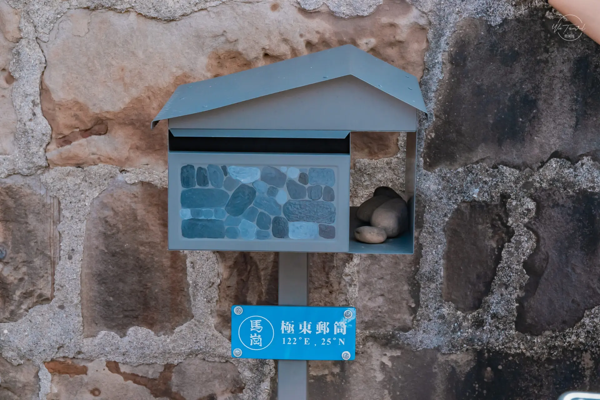在百年石頭屋還有信箱喔!千萬不要以為是郵差來收,其實是校長兼敲鐘的函恩還收去寄,真的超可愛,這一區也是華燈初上的拍攝點之一。一旁的牆壁上還放著劇照呢。