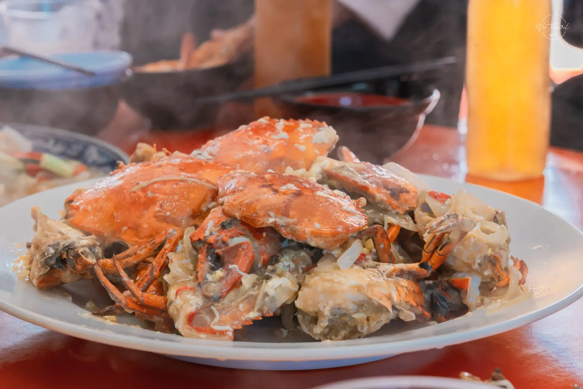 來到馬崗除了有美食,在旁邊的卯澳也有不少美食據點喔,這次我們吃的是「卯澳海洋驛站」,這也是我們第一次來到這,據說CP質很高,而且停車位很多,地點也很漂亮,不少重機族也都會來吃,據說原本的本店是位於卯澳漁港,後來搬家到貢寮福連街上,距離卯澳漁港及福連國小天然海水戲水池都不遠,交通便利很多,但是很多人好像比較喜歡他原本的地點,大概是比較靠近漁村,其實我們去的時候天氣還是有點炎熱,店家會送上一杯冰涼飲品,超好喝,讓微笑娃瞬間解口渴。喜歡吃螃蟹的人可以到櫃檯下方成列有:處女蟳、沙公及沙母等依照大小有不同的價格,價格都有標示出來!大家都可以詢問價格後再決定,因為微笑娃是吃圓桌的套餐,大家可以設定價格大概要多少給老闆配之類的點菜就沒煩惱。