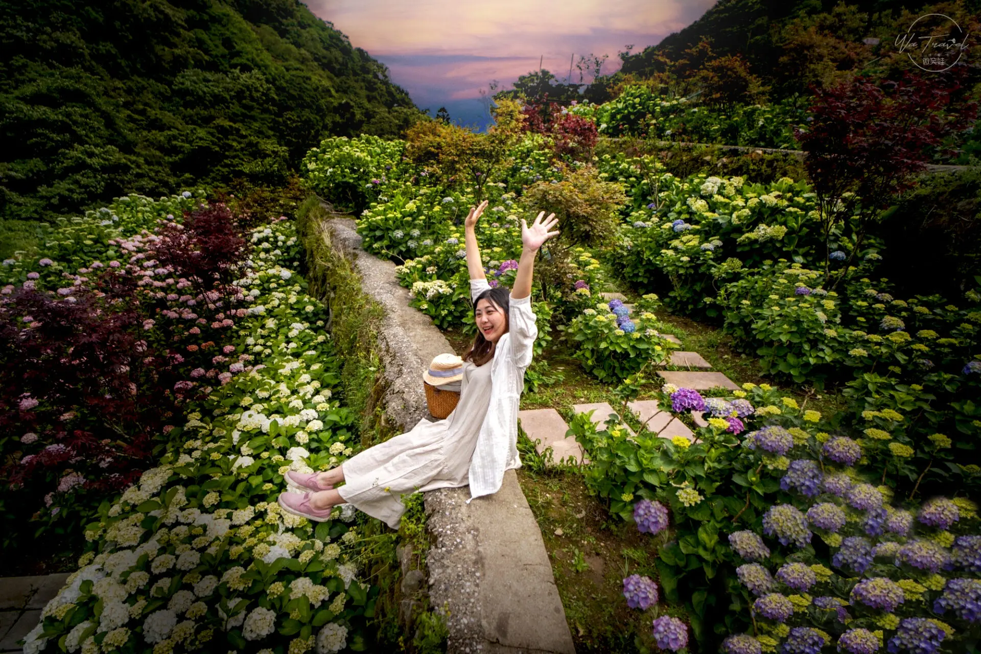 ▲ 坐著拍也很好看會感覺後面是整面繡球花