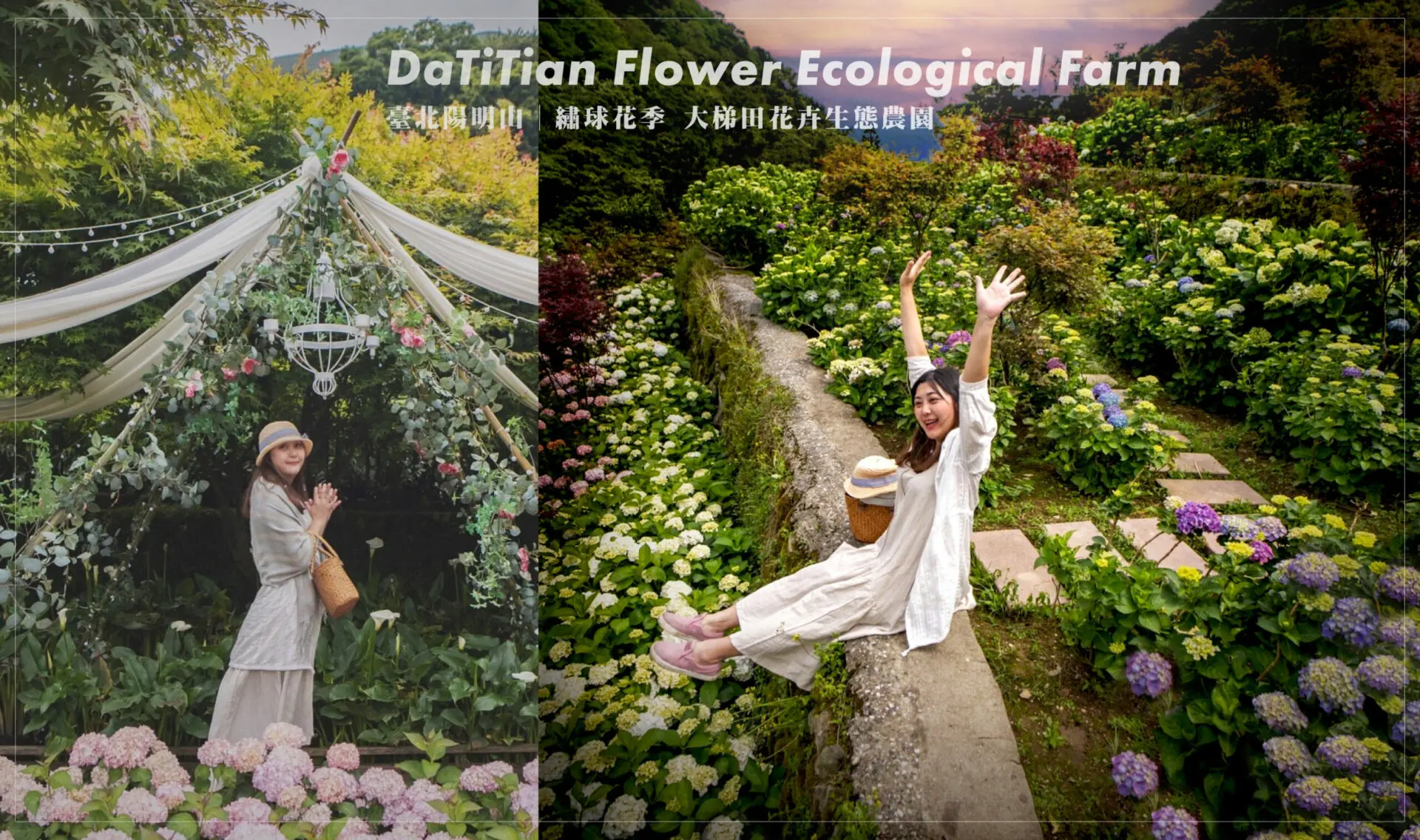 大梯田花卉生態農園每年大約5~6月能欣賞到滿山遍野的繡球花。(2022花期為5月中旬~7月上旬)