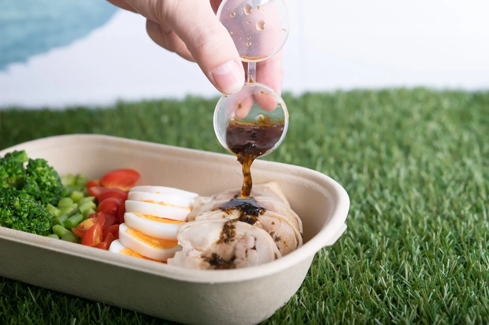 醬燒野菇餐盒 NT.120(蛋奶素食)可選擇全素要事先告知,另外奶蛋素的餐盒還有「玉子燒」、「玉子炒蛋」兩項餐盒。低GI.com精緻低卡餐盒選用的便當盒都可以直接微波對外食族相當方便,不論是要再加微波或是在公司加熱都方便食用,餐盒冷簍吃也不會覺得不好吃也是他們的特色。