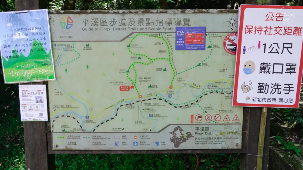 - 搭高鐵至臺北站 → 轉搭臺鐵至瑞芳站 → 轉搭臺鐵至平溪站下車,後步行15分鐘左右可達登山入口