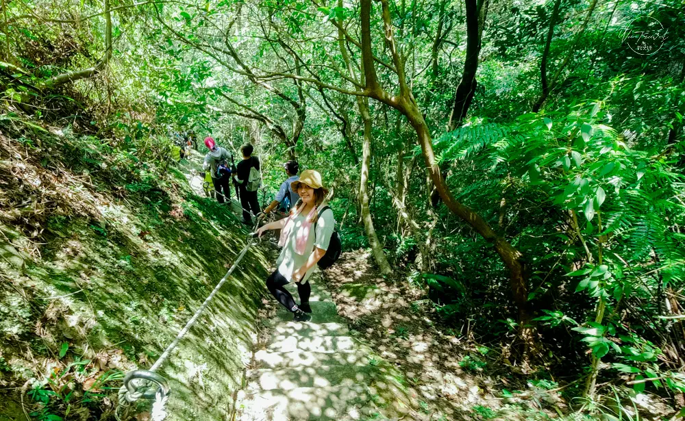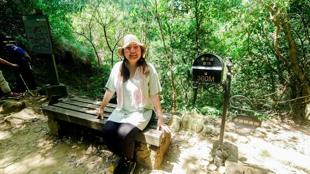 孝子山單程1.5公里,必須來回折返,孝子山的難度單爬一座山其實難度不高,因為來回往返大約30-40分鐘可以完成,但比較具有挑戰的爬高,由於微笑娃有嚴重懼高症,因此爬上去不看下方還好,但是要往下返回時真的超怕,但是只要掌握好慢慢向下走、並抓穩盡量不要看下方就可以減少恐懼的成分。