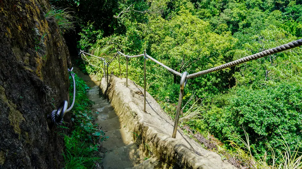 從我們這次爬的「孝子山」山頂可,遙望「慈母峰」(海拔410m)以及「普陀山」,有體力的人可以一次登三座山!若想登「慈母峰」建議可以先上「孝子山」在前往「慈母峰」,再登攀「普陀山」(海拔450m)。而這三座山位於山間鞍部,可按指標走向「慈母峰步道」是沿挖鑿於岩壁上開鑿石階,步道是沿著山岩稜線所開鑿而成,他的平均坡度與「孝子山步道」攻頂段相比其實是比較平緩,但海拔相對孝子山高。