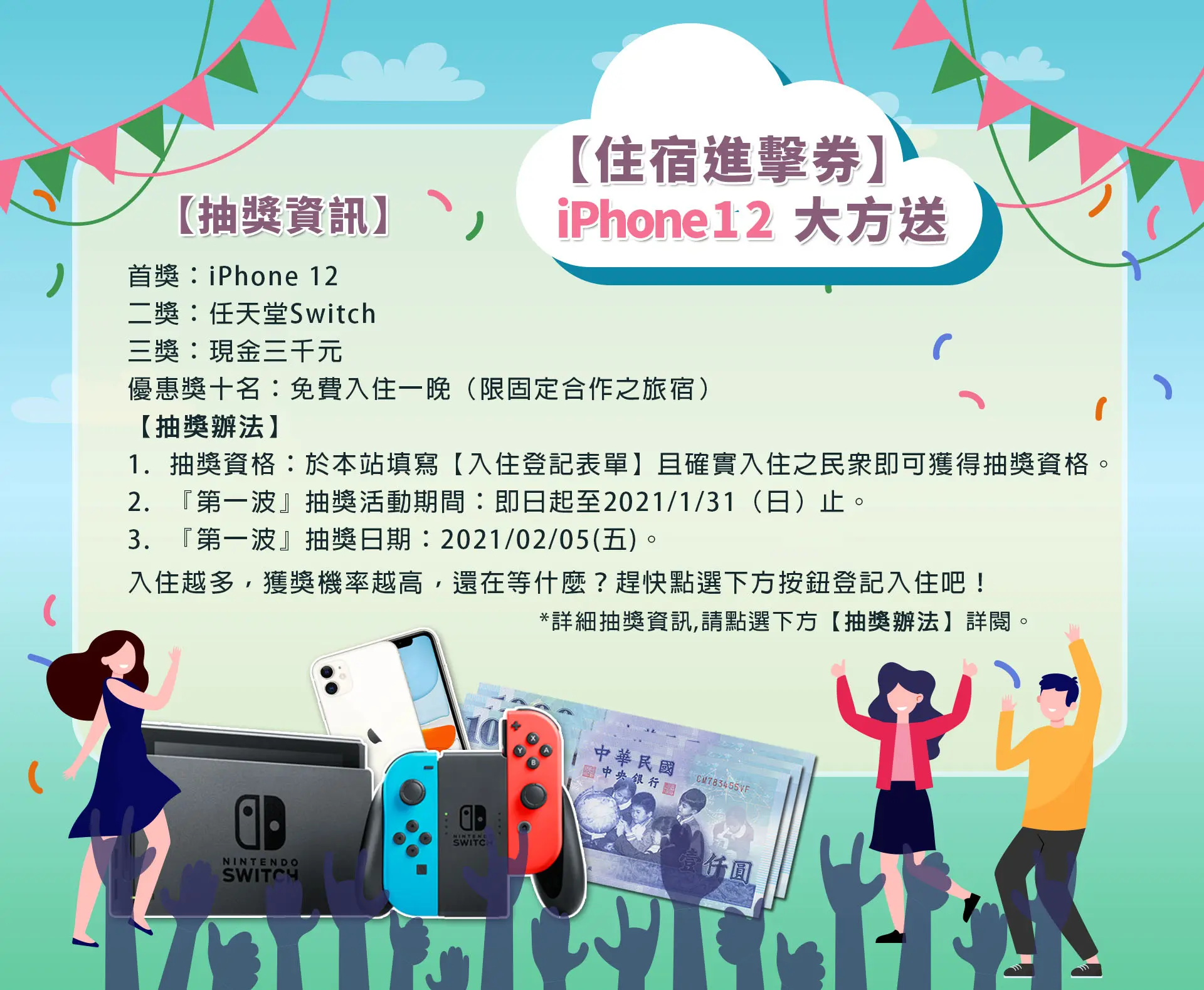 - 優惠獎十名:免費入住一晚(僅限固定合作之旅宿)