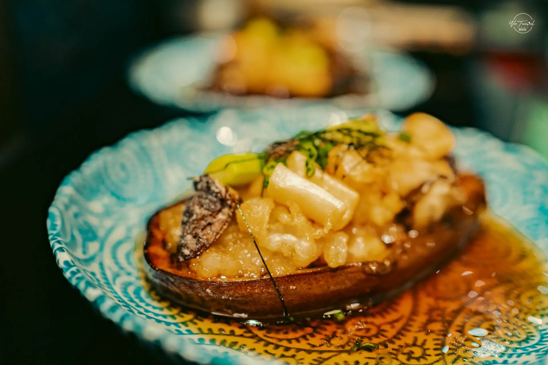 米茄作為基底,日本米茄的香脆口感加上各式海鮮料理的豐富口感,一定是讓人難以忘懷的美食體驗。而茄子肉的運用,也展現了料理師的巧思與用心,不僅增添了整道料理的豐富度,更減少了浪費,是一個非常環保的做法。除了醬汁的調味,整體的平衡和味道也非常重要,因為它決定了整道料理的品質和口感!米茄寶船式將日式炸物下方使用日本當地的圓茄(米茄),上方炸物有蔬菜、蝦子、干貝、香菇、花枝等等多種海鮮蔬菜料理,特殊的搭配鮮嫩的米茄與酥脆的炸海鮮,讓整道菜除了有飽足感也相當美味,加上靈魂醬汁讓米茄使用天婦羅(天ぷら)的炸法搭配起來相當解膩,而且一口接著一口,將中心的茄子也都吃個精光。