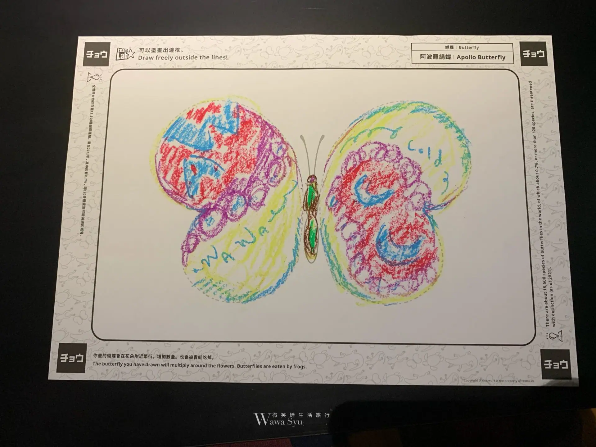 ▲ 微笑娃畫的蝴蝶,忘記拍冷冷的青蛙