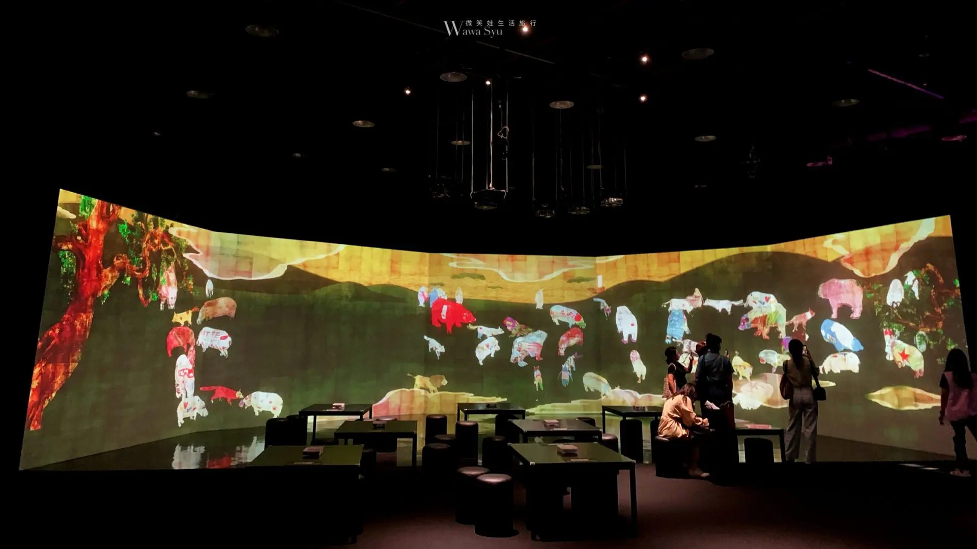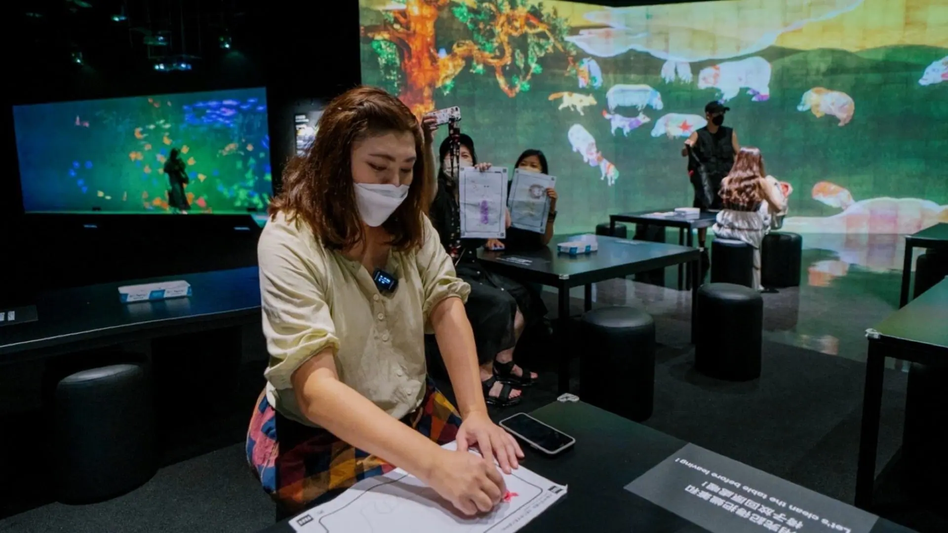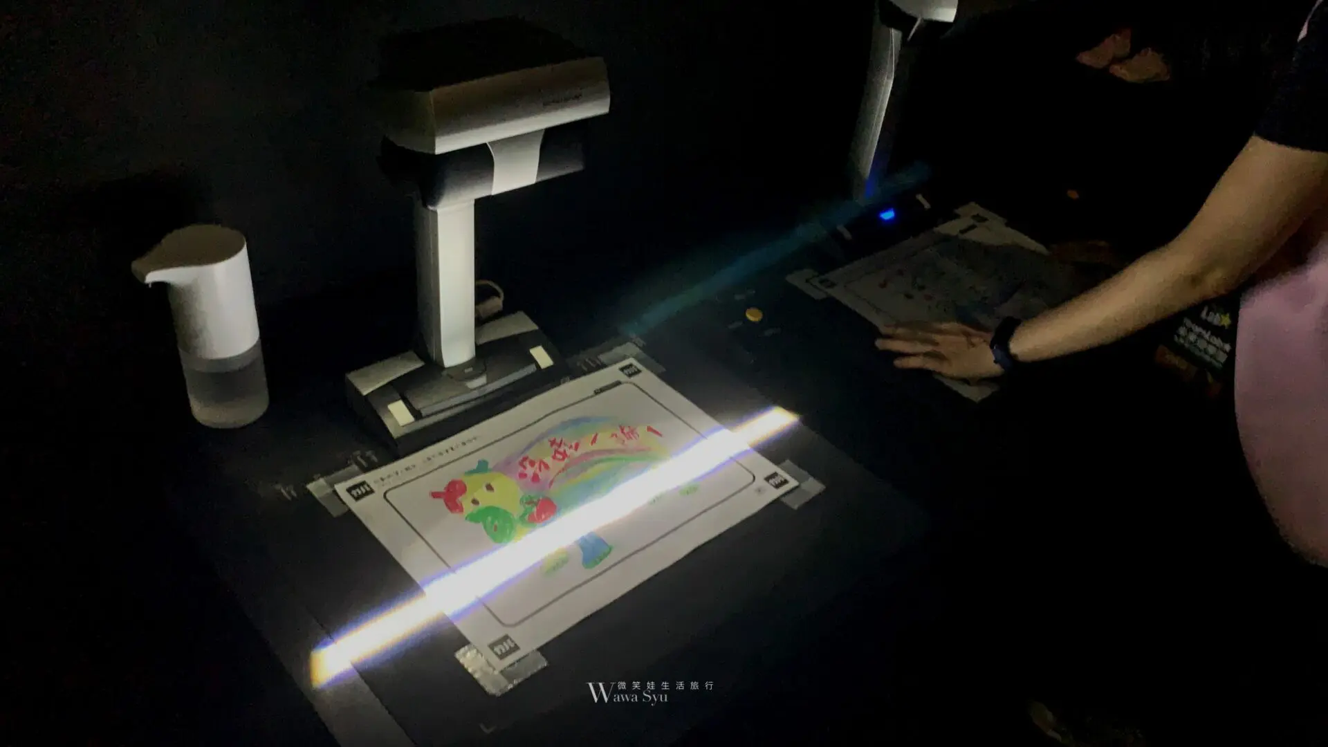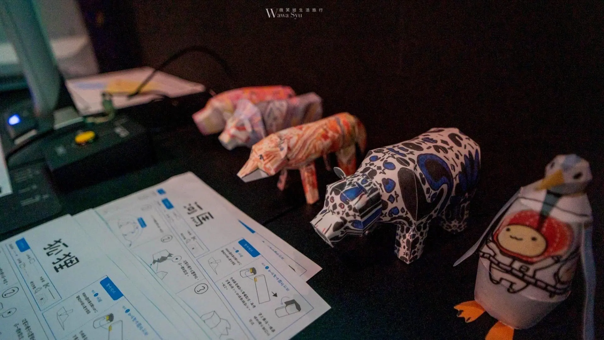 以上的九個展區有互動彩繪的的是:「塗鴉自然:迷失、沉浸與重生-紅色名錄」彩繪小型動物以及「彩繪動物」彩繪大型動物!小型動物我們隨機在門口入場處拿到的是蝴蝶跟青蛙,他是屬於生態列,所以青蛙的出現可以把蝴蝶吃掉,超有趣的,另外經過手的碰觸也會讓蝴蝶像噴彩散開;彩繪動物區我們都拿到何馬,我看有人拿到獅子跟馬也感覺很好玩,彩繪玩的大型動物圖還可以再自己看是否要花費NT.99製作「彩繪動物立體紙模型」,我個人覺得蠻值得的,畢竟都來了,可以看到自己畫的東西變真實,再透過動手製作讓他立體化!非常有趣。