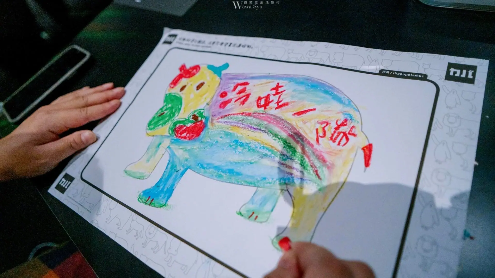 ▲ 彩繪動物區可以在牆上找到自己畫的!剛出現的時候還會有聚光燈喔