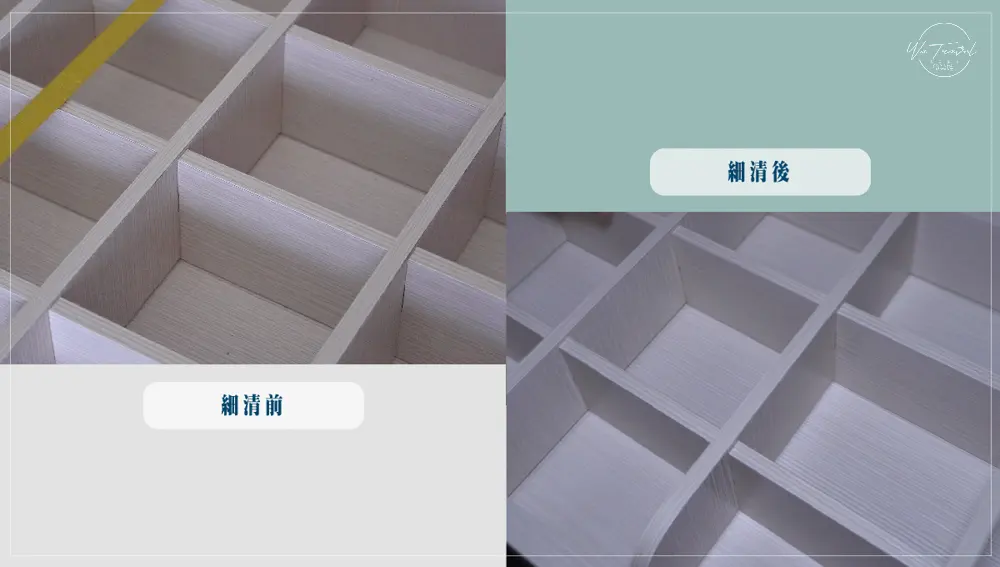 像這樣的衣櫃常見的多格收納,其實不是很好清潔,還有抽屜的角落,這些透過細清都能讓降低後續維護。