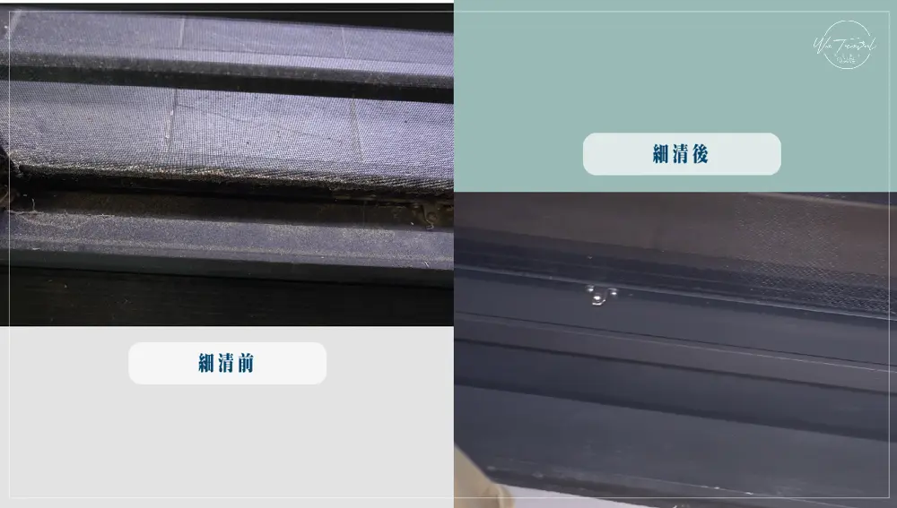 紗窗細清,窗邊各個角落及較隱密的窗縫,細清都會進行清潔處理。